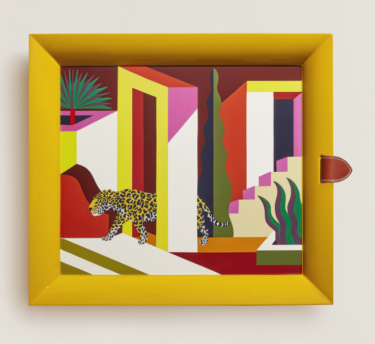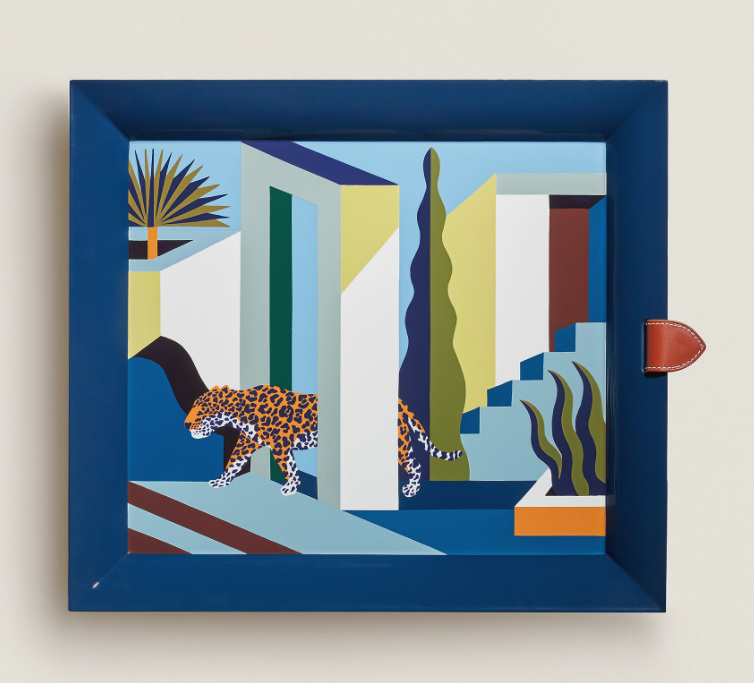 Ce joli plateau rempli de formes géométriques cassées par un majestueux jaguar en son milieu est vendu au prix de 1 050 euros !