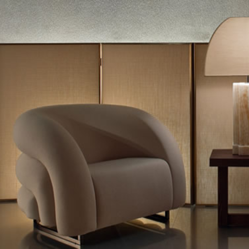 Le fauteuil Baloon du fabricant italien Armani Casa est recouvert de pieds de nickel noirs, une solution design pour une vie moderne. Voici quelques images et exemples de cette belle pièce en intérieur.