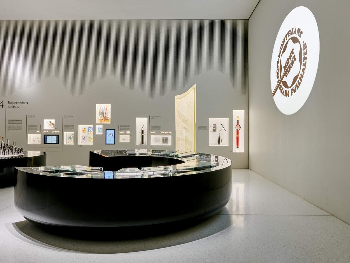 Fruit de l’association de trois créateurs, la marque Montblanc a fait son apparition en 1906. Le banquier Alfred Nehemias, le papetier Claus Johannes Voss et l’ingénieur August Eberstein ont inventé le stylo-plume Simplo à Hambourg, qui a lancé la marque. L’emblème de la société, l’étoile blanche à six branches, apparaît alors quatre ans après à la suite du dépôt du nom de la société. Après de nombreuses innovations, Montblanc s’est développé avec un département maroquinerie, horlogerie, ainsi que joaillerie. La qualité de ses produits est à la genèse de sa renommée mondiale, et ses célèbres packaging sont mis à l’honneur dès l’extérieur du musée.