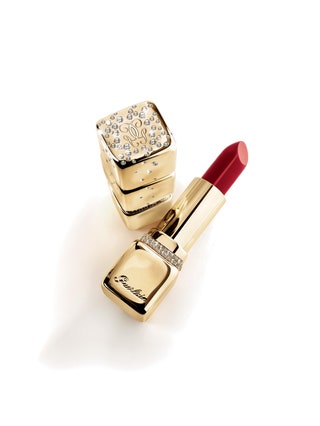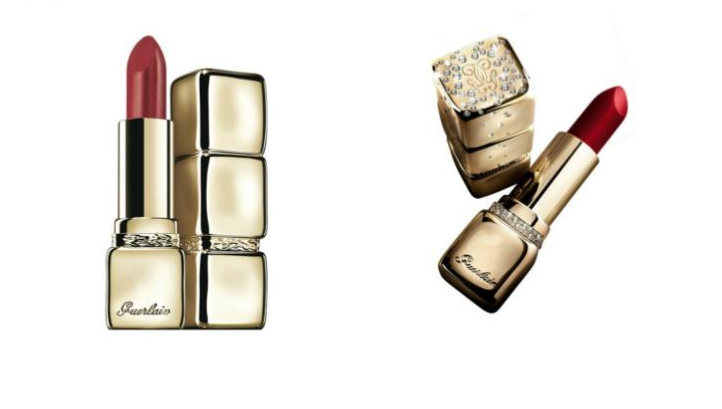 Le mythique rouge à lèvres Kiss Kiss de chez Guerlain se déshabille de sa robe noire pour en enfiler une d’or et constellée de diamants.
