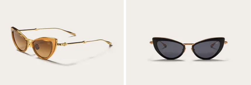 Voici enfin, les trois paires VIII – Lunettes œil-de-chat. La première est en titane et polyamide avec clous pour 680 euros.