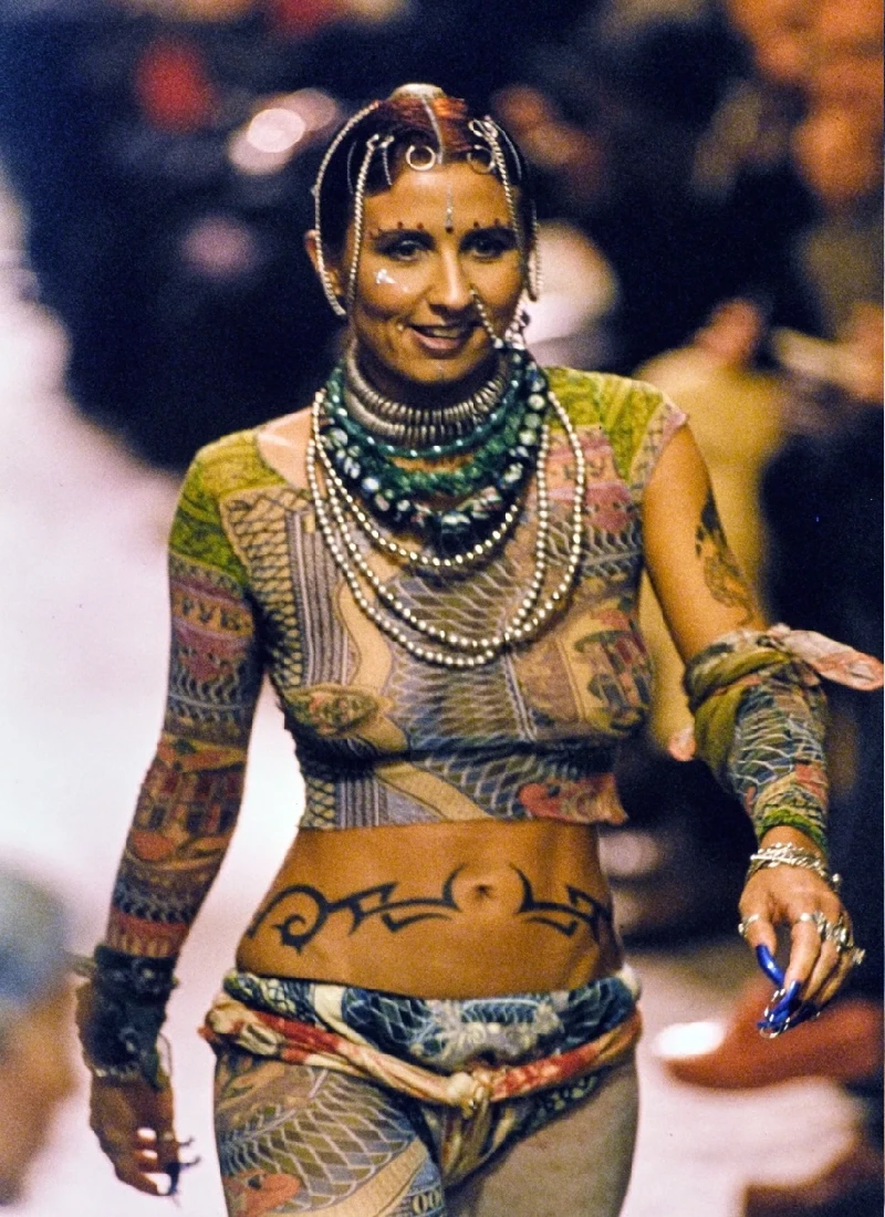 En 1993, Jean Paul Gaultier présente la collection printemps-été 1994 baptisée "Les Tatouages".