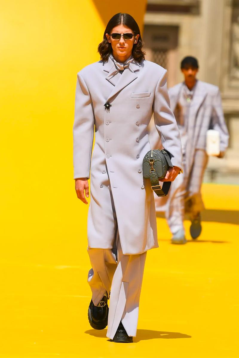 Ces tenues reprenaient bon nombre des fondements du mandat de quatre ans d'Abloh, qui s'est terminé par son décès brutal des suites d'un cancer en novembre dernier. Sa fascination pour l'enfance était un thème central, avec des vestes dotées de poches en shearling surdimensionnées aux couleurs de pâte à modeler, et des manteaux auxquels pendaient des breloques en forme d'outils de bac à sable.