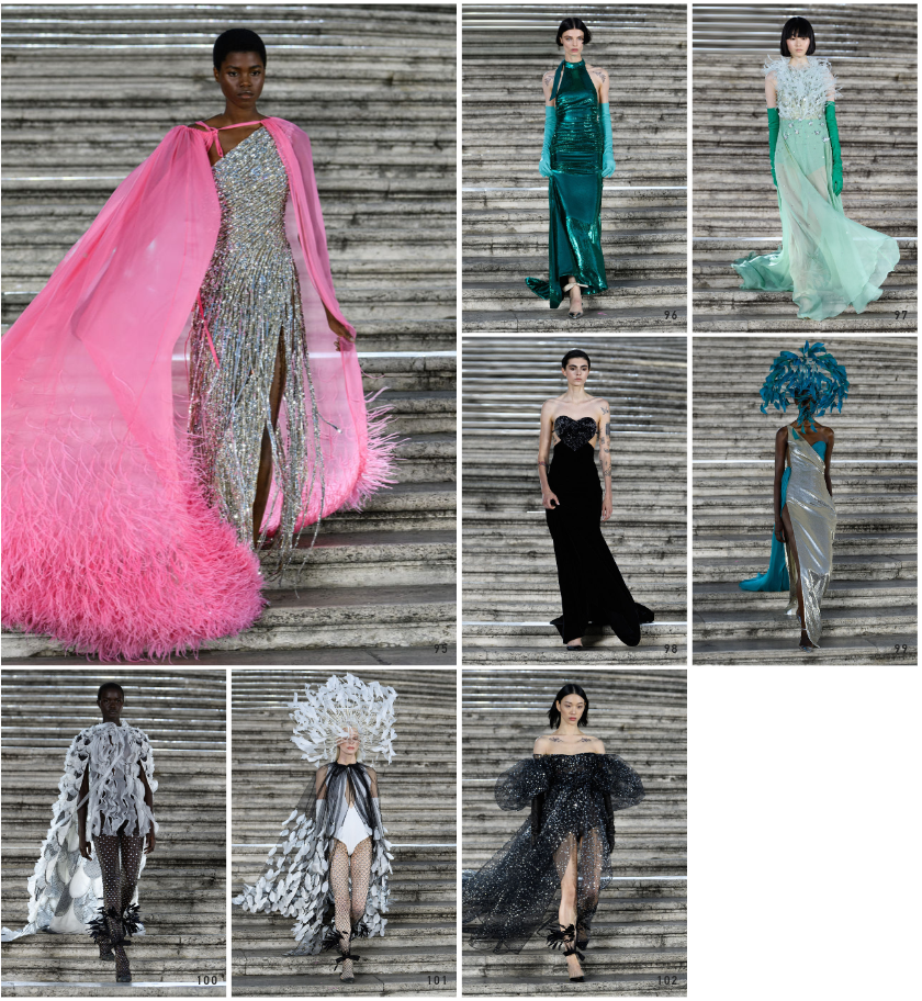 Après cette poétique citation de Pierpaolo Piccioli, nous finissons notre petit voyage avec les huit magnifiques looks qui ont clos le défilé en beauté :
