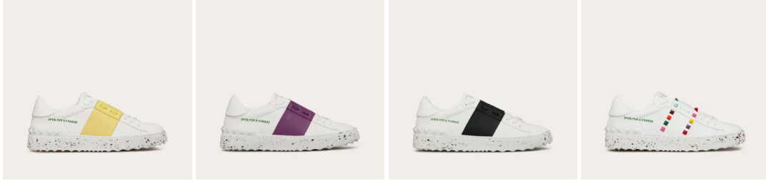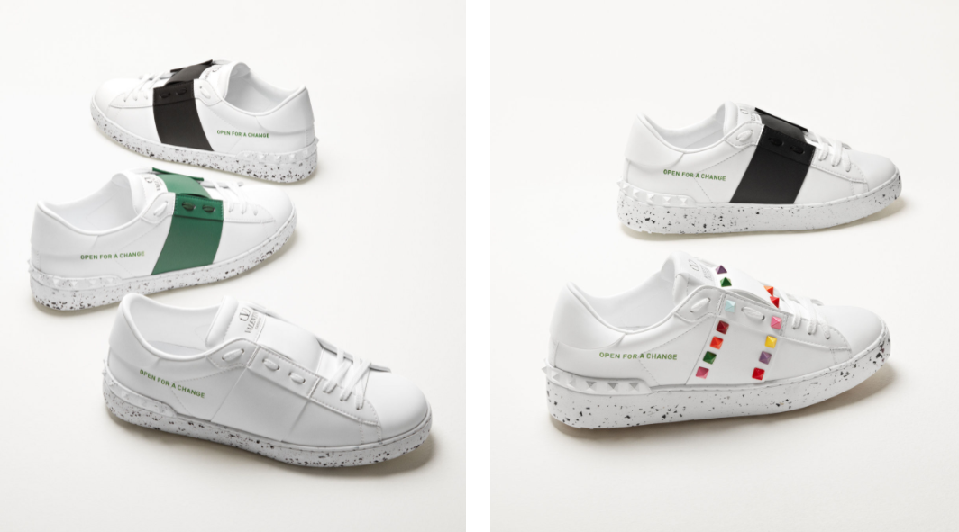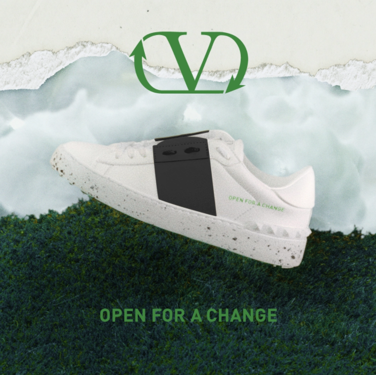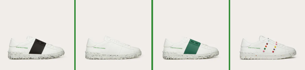 Ici, « Valentino Garavani Open For A Change sneakers » reprends deux des baskets les plus emblématiques de la maison – Open et Rockstud Untitled – et les repensent « in the spirit of innovation », soit elle les redessinent dans un esprit d’innovation et avec une éthique bien plus responsable.