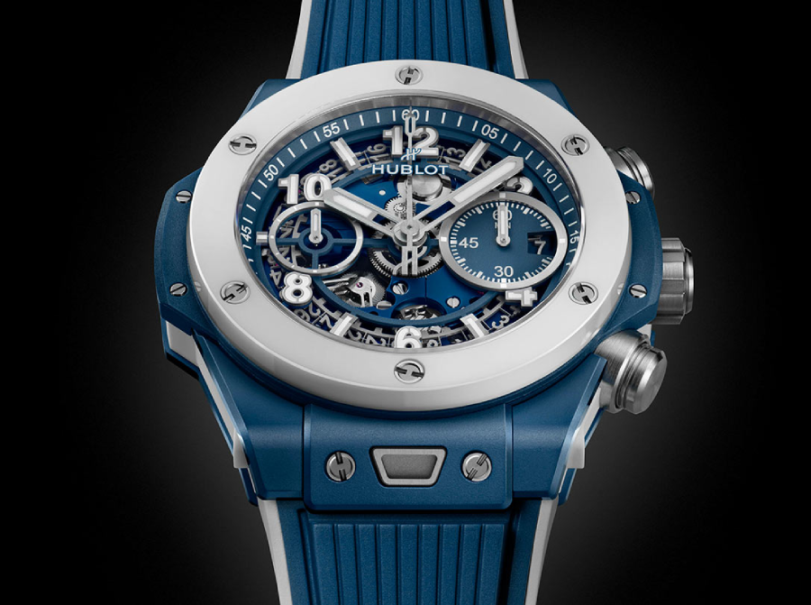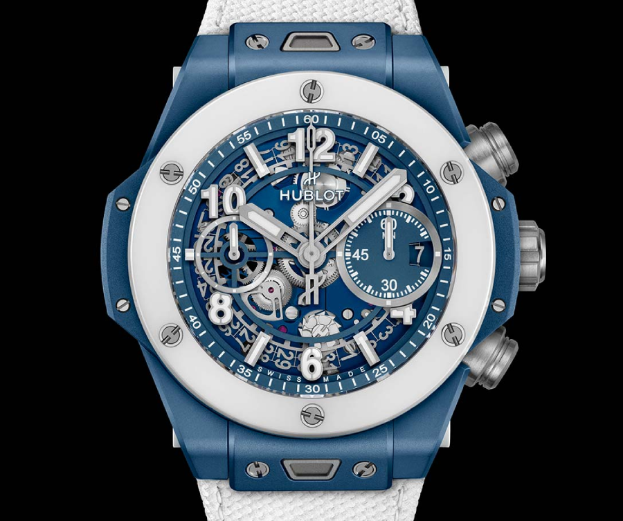 En hommage à la Côte d'Azur, la nouvelle Hublot Big Bang Unico Azur arbore un boîtier en céramique bleue et une lunette d'un blanc pur inspirés par les eaux lumineuses de la Méditerranée.