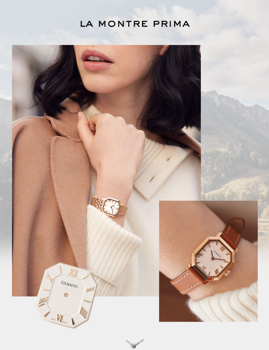 Le nom ? La montre Prima. La maison ? Gemmyo. Le savoir-faire ? Impeccable. Dans l’éclat de son cadran blanc minéral, les aiguilles se déplacent au rythme d’un mécanisme millimétré. Des lignes architecturées se dessinent, inspirées des facettes d’un diamant à pans coupés.