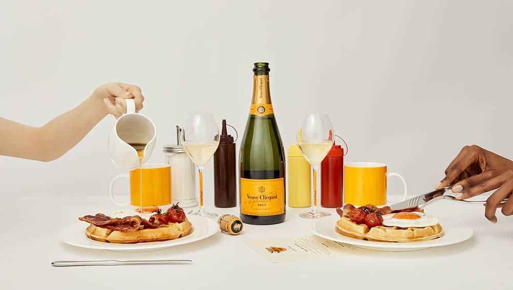 Le reste du menu explore les classiques avec une touche de champagne Veuve Clicquot, notamment les soldats aux œufs et à la marmite, les gaufres au sirop d'érable épicé et même un luxueux pain au bacon.