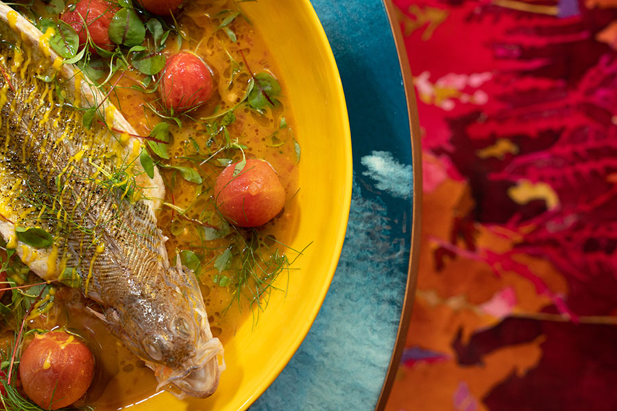 Il sera bien sûr fait la part belle à la Côte bretonne dont le Chef est natif, avec des arrivages journaliers en direct des criées de l’Océan Atlantique et une pêche raisonnée et respectueuse. Encornets frits, thon rouge, poulpe doré, vive à la flamme, la promesse d’une dégustation de haut vol. Sucs des arrêtes tomatés, huile infusée à la bergamote, mayonnaise épicée, épices thaï ou aromates maison, les saveurs se mixent avec précision et créativité.