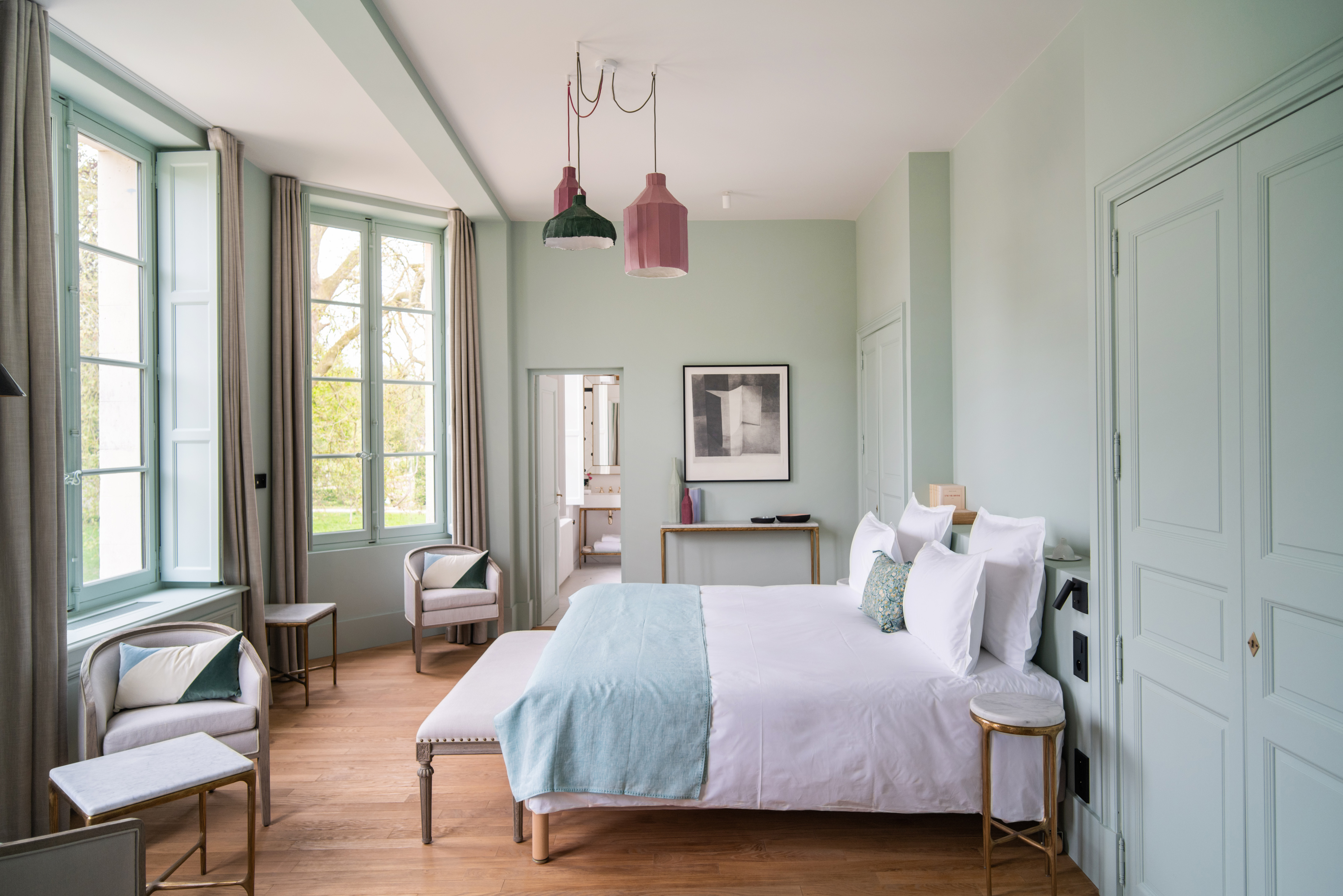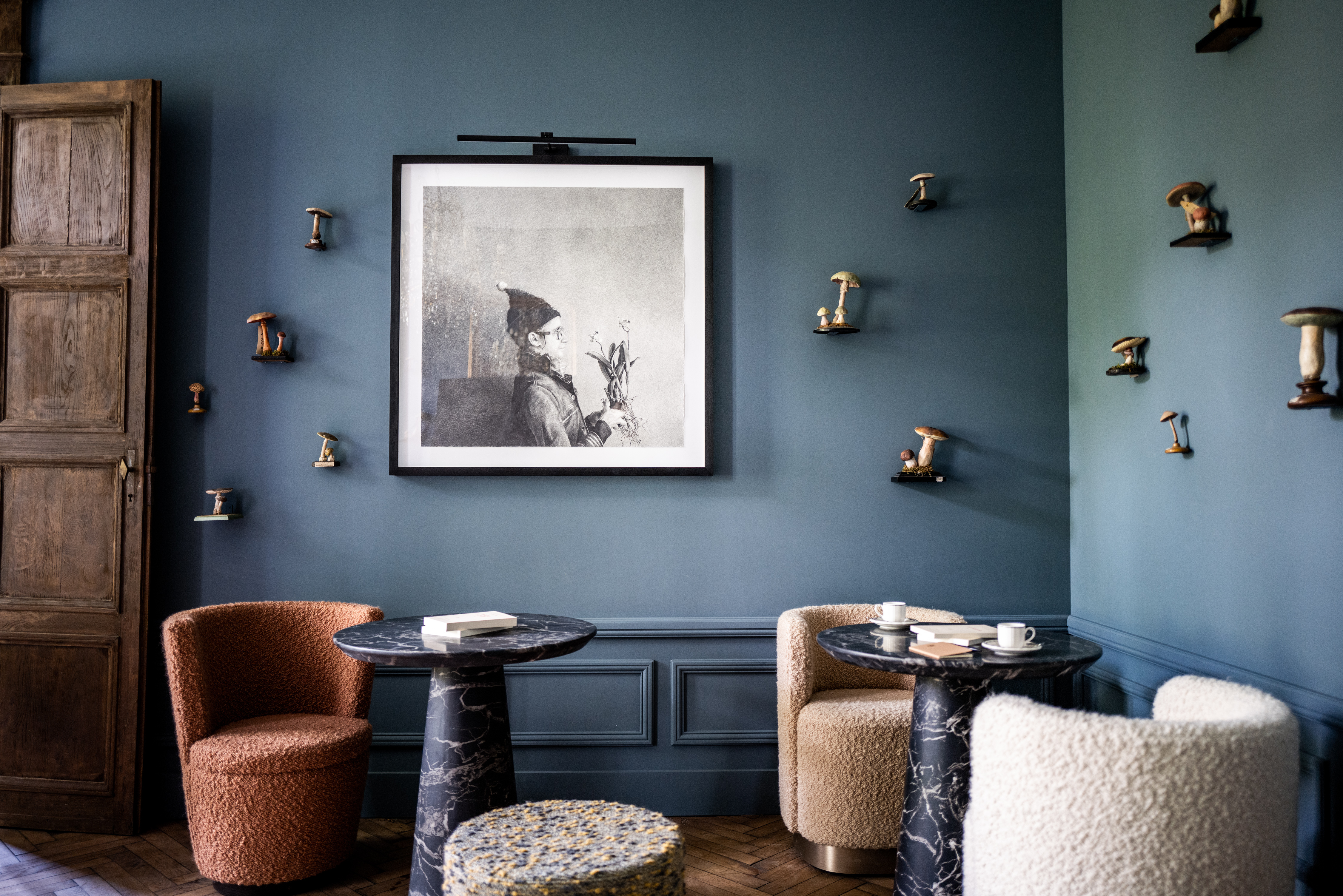 Ce que l’on aime : L’art qui se pose, comme dans toutes les maisons de la collection, en fil rouge de la demeure. Les œuvres s’inspirent ici de la nature. Et c’est tout naturellement que les dessins du 18e siècle côtoient les roses de Pierre-Joseph Redouté, les photographies d’artistes contemporains ou les dessins de jeunes artistes illustrateurs naturalistes comme Valentine Plessy. Sans oublier quelques jolies pièces d’artisanat des plus belles maisons françaises des arts de la table telles Pierre Frey, Gien, Sarah Lavoine, Sylvie Coquet ou Isabelle Poupinel.