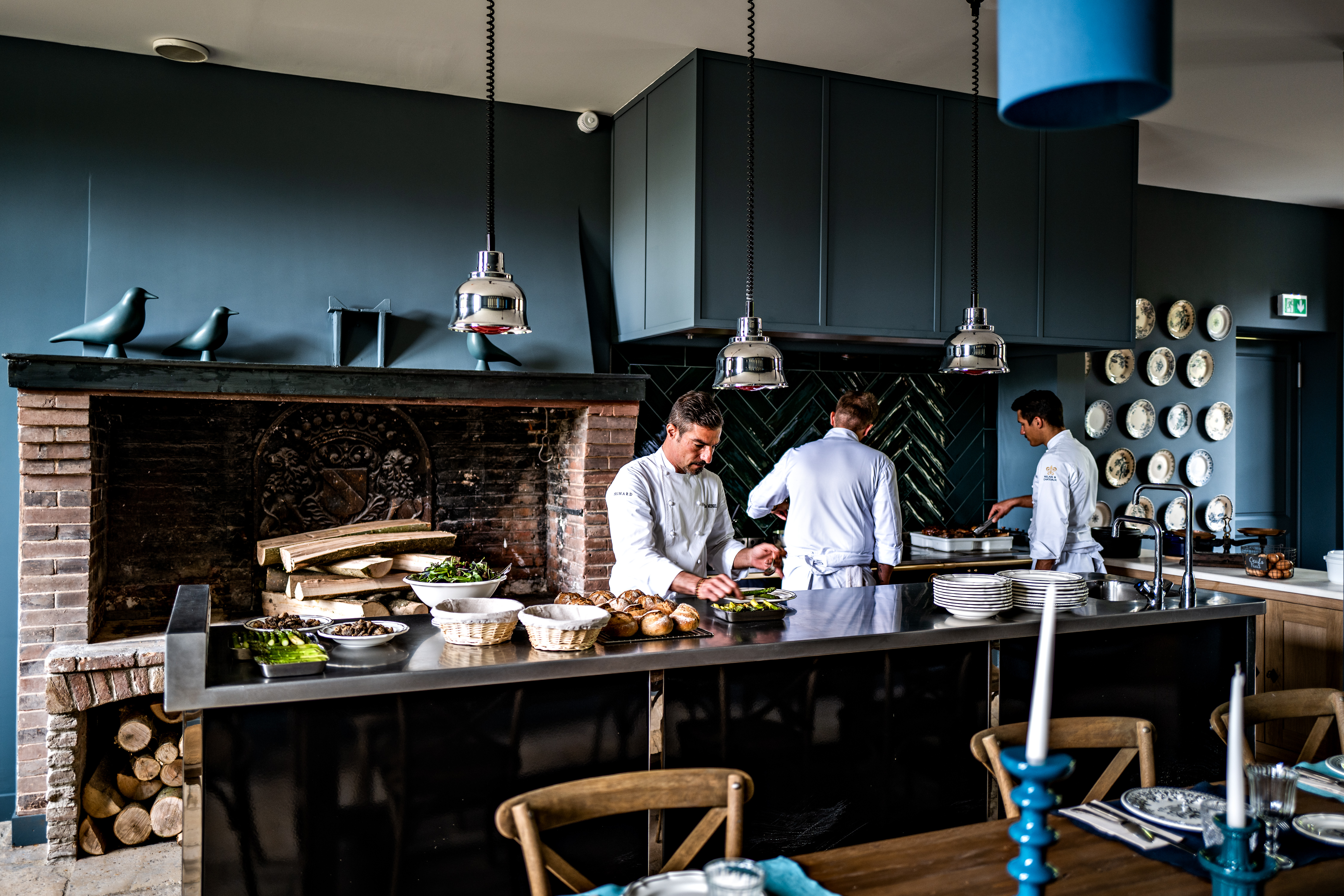 Et pour un moment plus intime, l’ancienne cuisine de cette maison sur l’Eure se transforme en salle à manger privée qui accueille 2 à 12 personnes autour de la grande table centrale. Le Chef cuisine devant les hôtes entre la cheminée d’époque et le beau fourneau La Cornue, un délice !