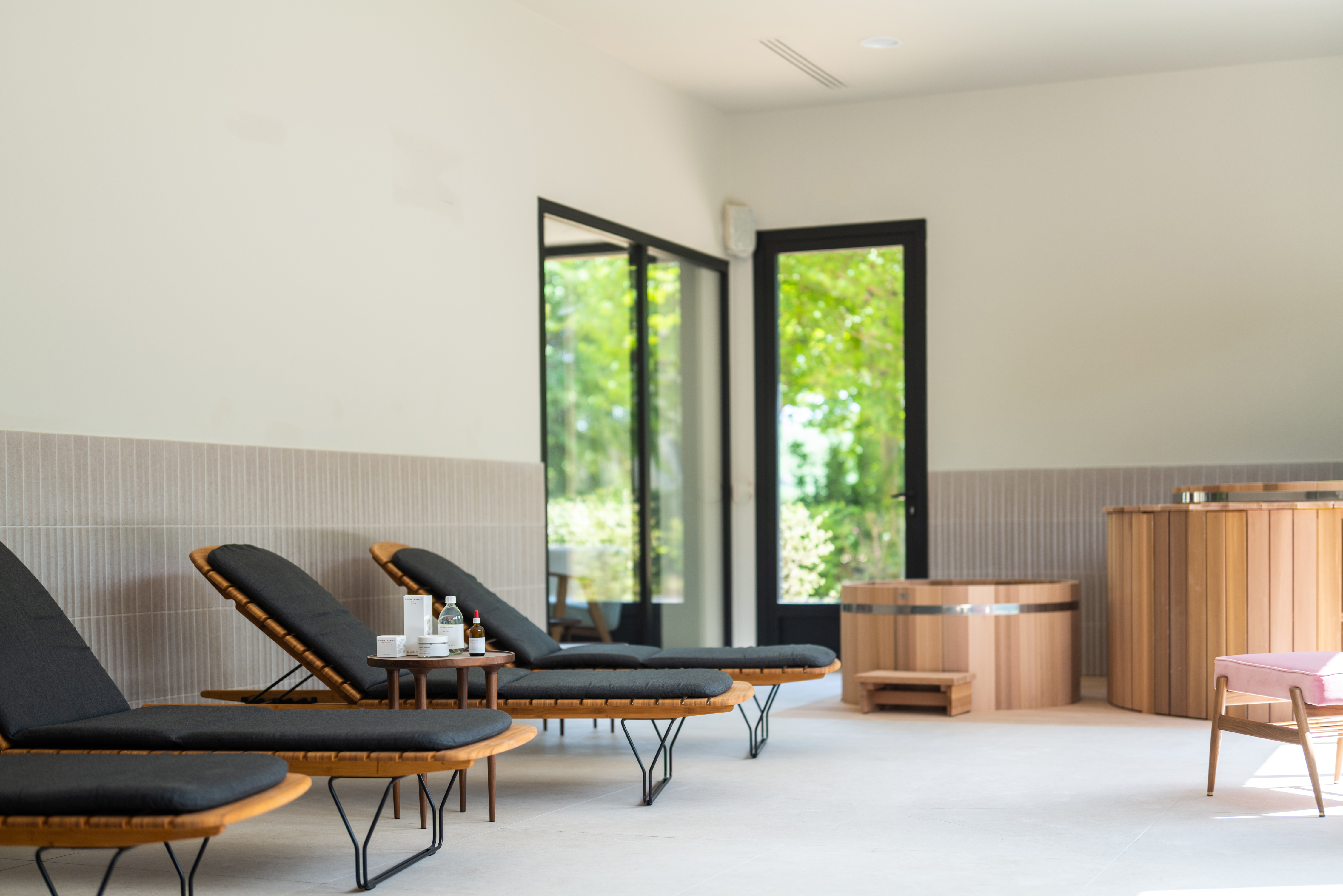 Pour reprendre son souffle après une belle balade ou quelques brasses dans la piscine extérieure chauffée, un espace détente 100% nature qui offre des soins naturels et bio de grande qualité signés Susanne Kaufmann et issus de protocoles élaborés au cœur des Alpes autrichiennes. Une première en France.