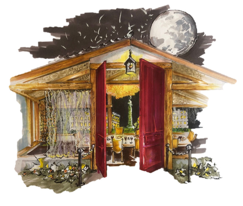 À deux pas de la Place Vendôme, le chalet entend rendre un vibrant hommage aux joaillers de ce célèbre quartier parisien en se parant d’or et de pierres précieuses, tout en conservant son côté intimiste.