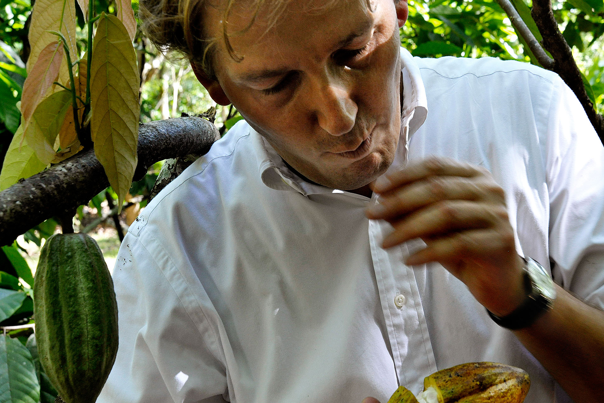 Il part régulièrement sillonner le monde à la rencontre des meilleurs producteurs et rapporte dans ses valises de nouvelles saveurs qu’il distille savamment dans ses collections de Haute Chocolaterie.