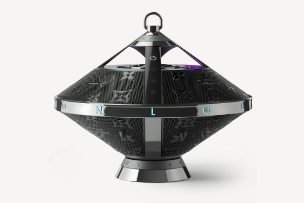 Cette toupie sonore et étincelante de métal et de cuir diffuse un son à 360° ou directionnel synchronisé à une animation colorée révélant l’emblématique fleur de Monogram Louis Vuitton…
